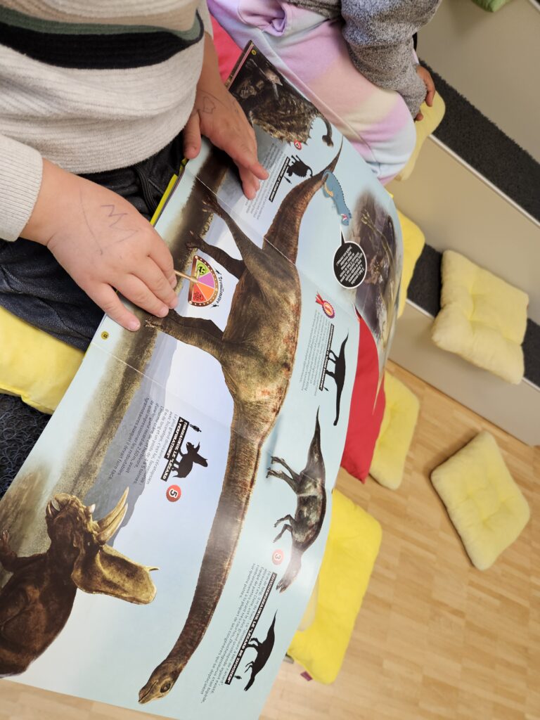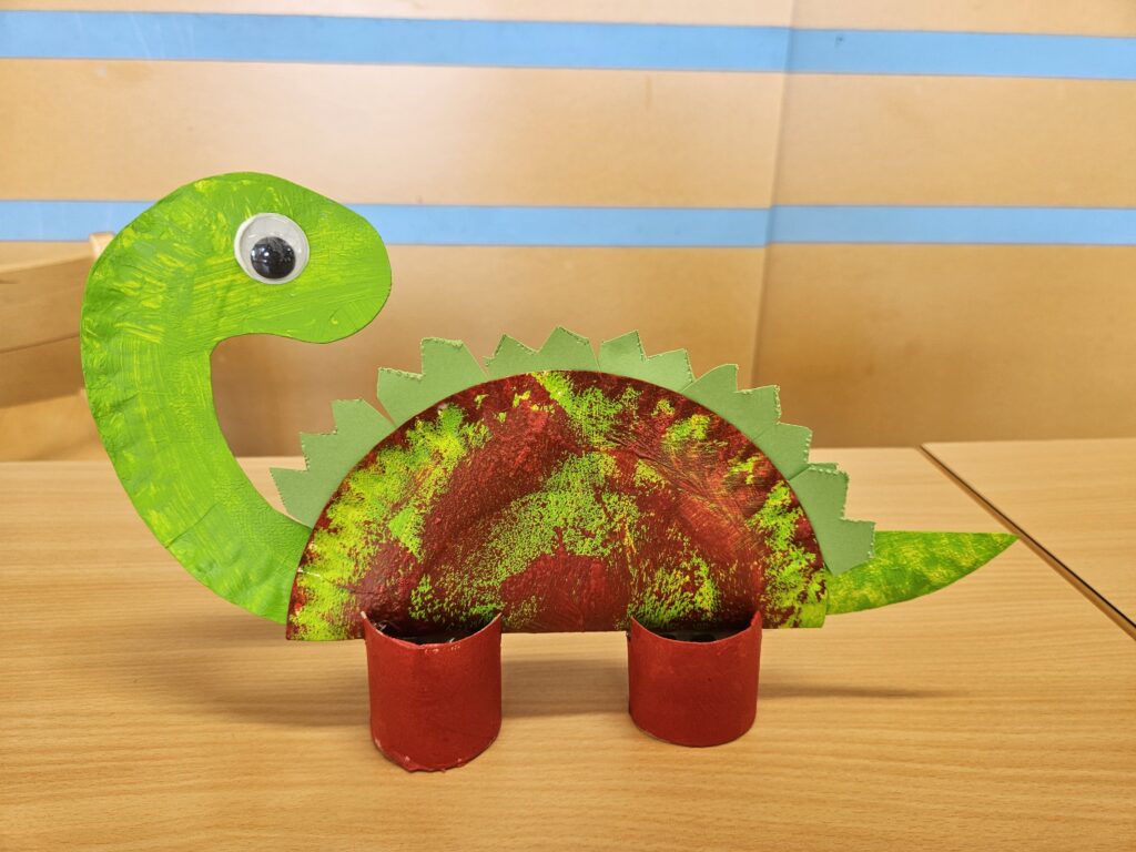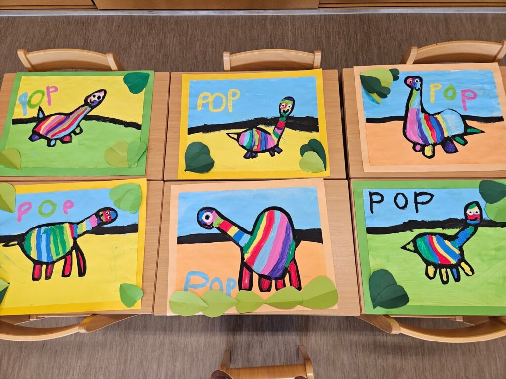 Cette année, nous avons fait la rentrée avec Pop, le dinosaure multicolore.