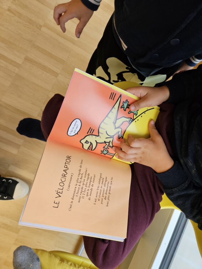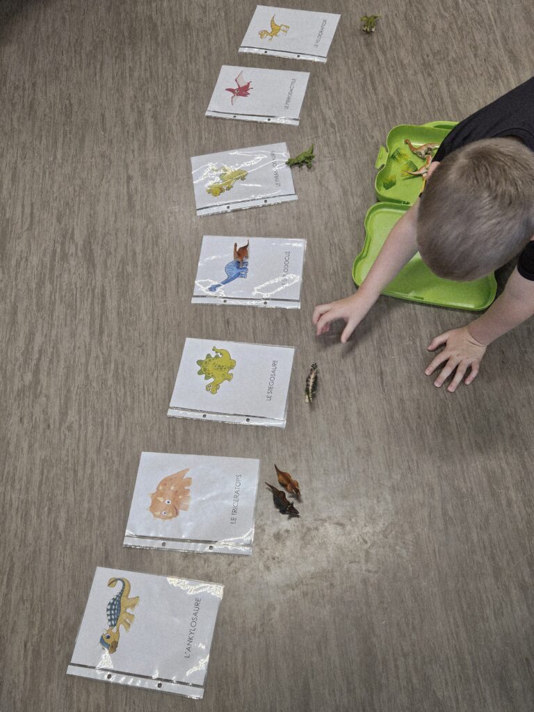 A l’aide de documentaires, nous avons appris à reconnaître différents dinosaures : le tyrannosaure, le diplodocus, le tricératops, le ptérodactyle, le stégosaure et le vélociraptor. Lesquels connaissez-vous ?
