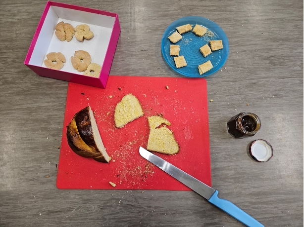 Nous avons aussi parlé de la fête de la Bénichon et ses spécialités culinaires. Cuchaule, moutarde de Bénichon, pains d’anis et croquets ; chaque classe de 1-2H a mis la main à la pâte pour organiser une grande dégustation. MIAM !